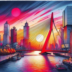 R023 - Rotterdam Erasmus bridge red