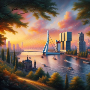 2024Erasmus bridge in green landscape.