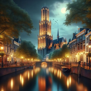 UTR001 - Utrecht Dom Tower and Canal illuminated